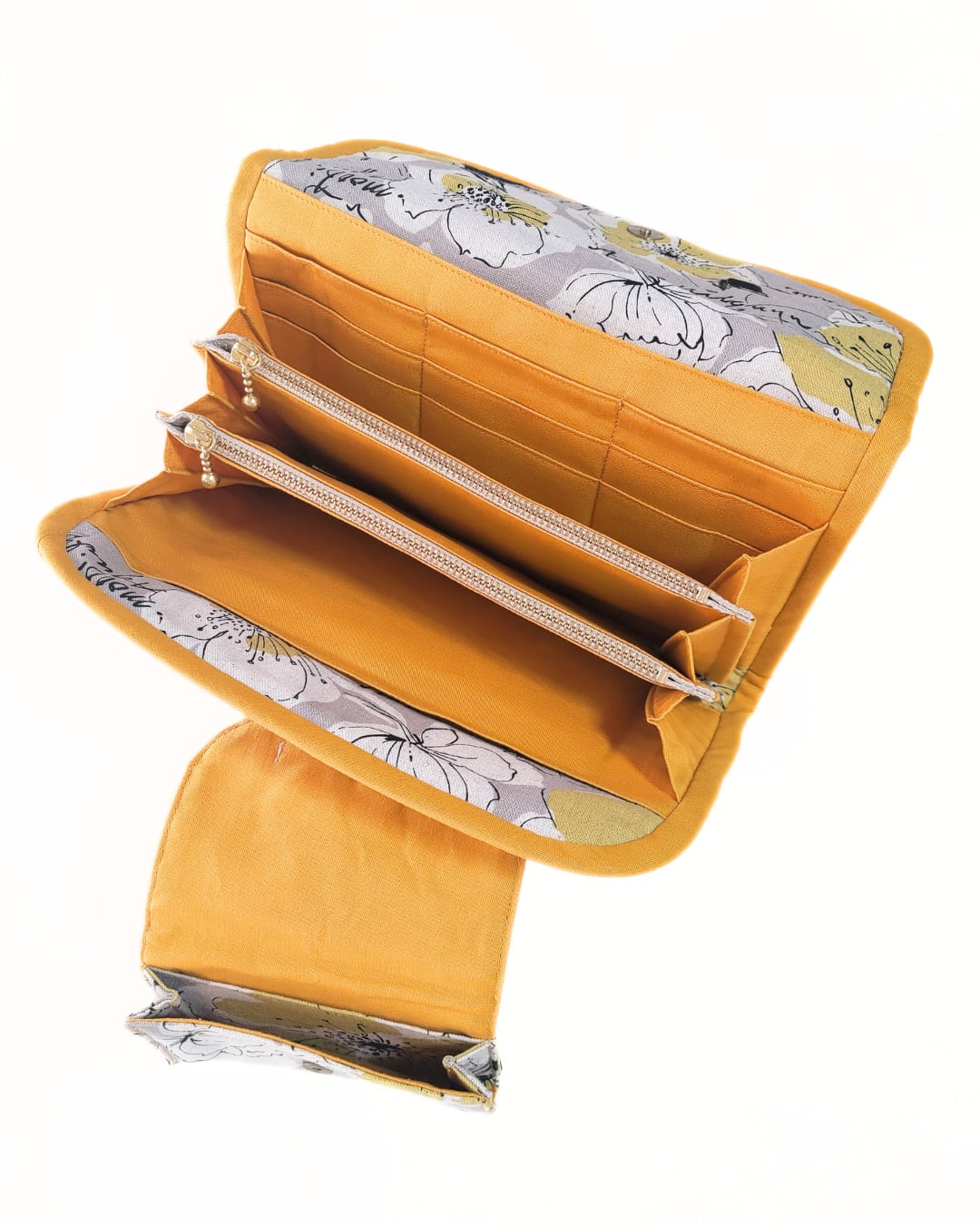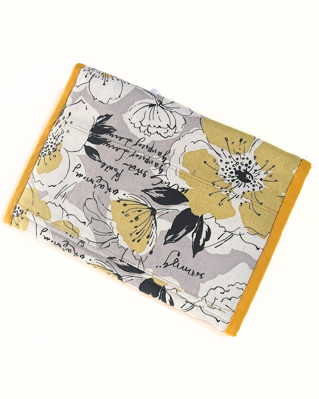 ノーマルポーチとお薬ミニポーチセット 北欧柄 英字フラワー イエロー